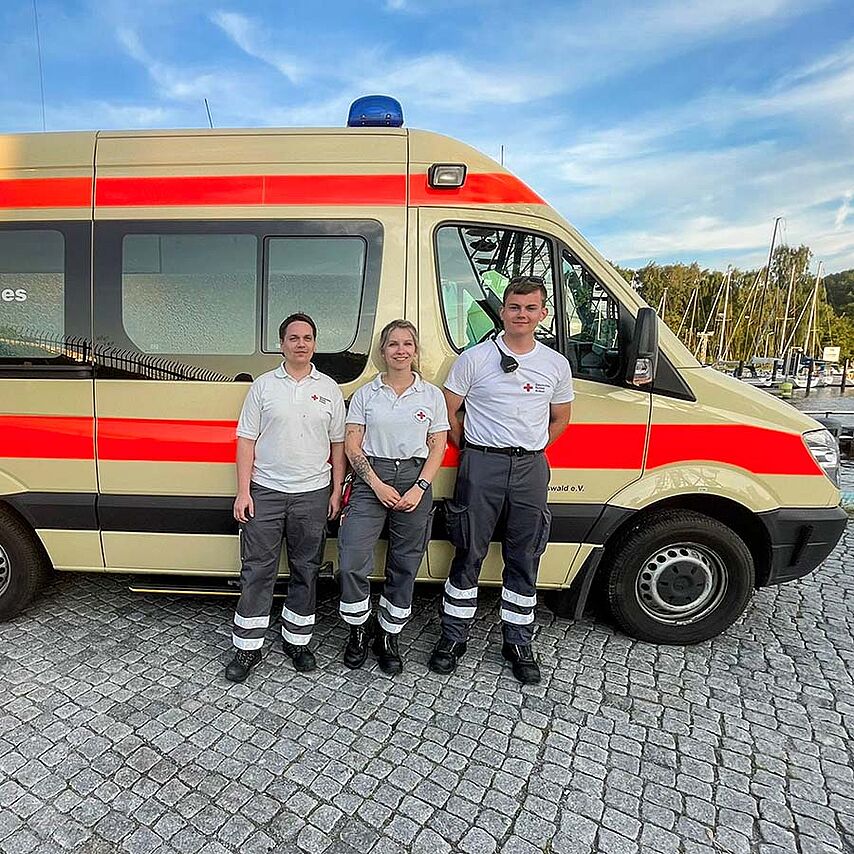 Die Sanitäterinnen und Sanitäter des DRK versorgen Betroffene schnell und kompetent, behalten den Überblick und leiten bei Bedarf weitere Maßnahmen ein. Wenn erforderlich, wird natürlich auch der Transport in eine medizinische Einrichtung organisiert.