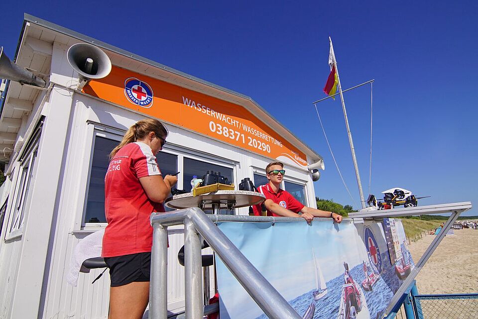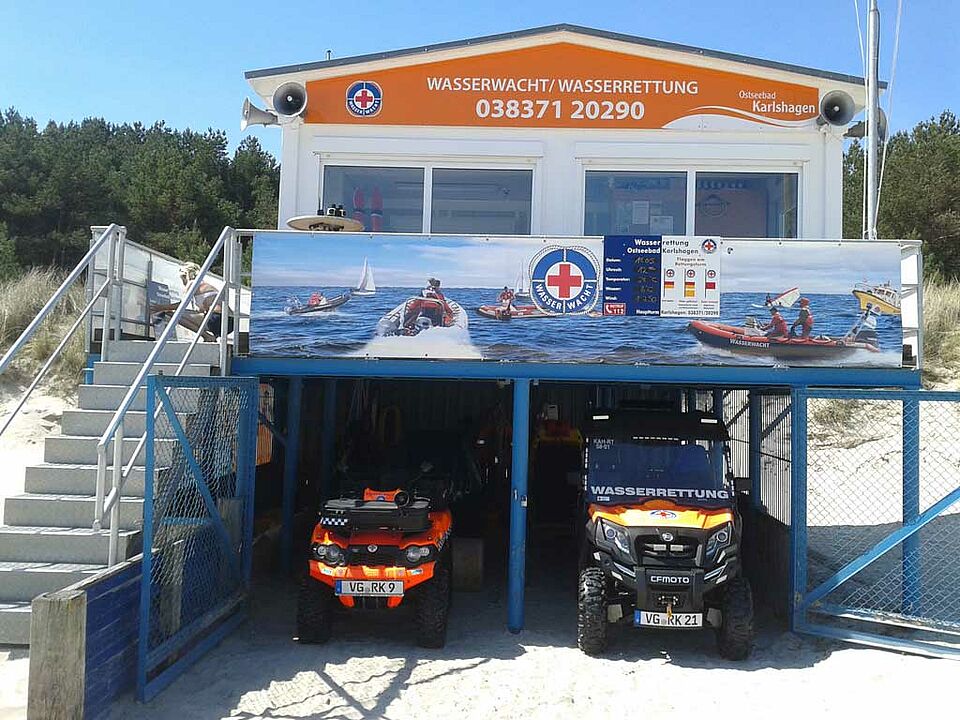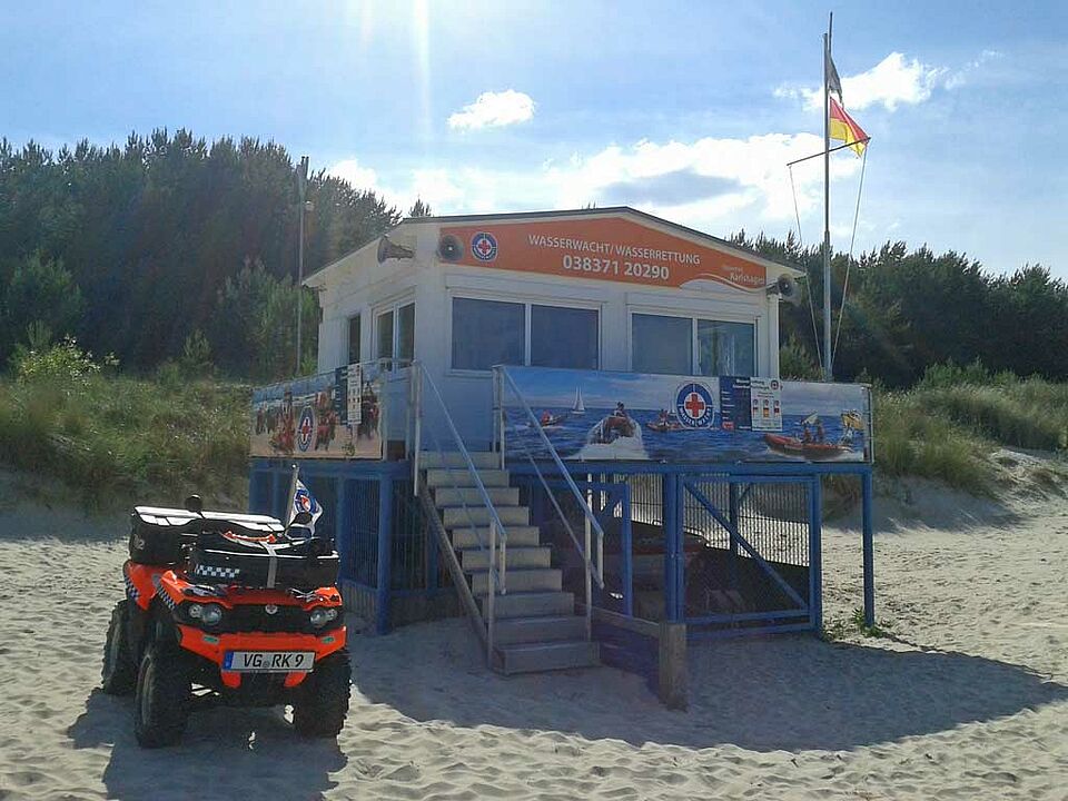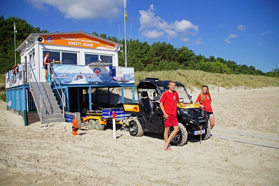 Das Ostseebad Karlshagen liegt an der Mündung des Peenestroms in den Greifswalder Bodden. Hier sichern unsere Rettungsschwimmer einen etwa 1,2 Kilometer langen Strandabschnitt mit feinem Sand und einer Breite von 50 bis 80 Metern.