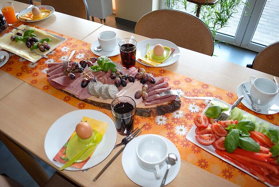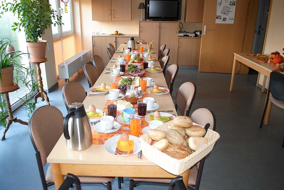 Im Erdgeschoss steht allen Bewohnerinnen und Bewohnern eine Begegnungsstätte zur Verfügung. Sie dient als Treffpunkt für: